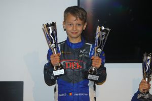 Karttalent Lyam Peckstadt (10) wint in zijn eerste regenraces