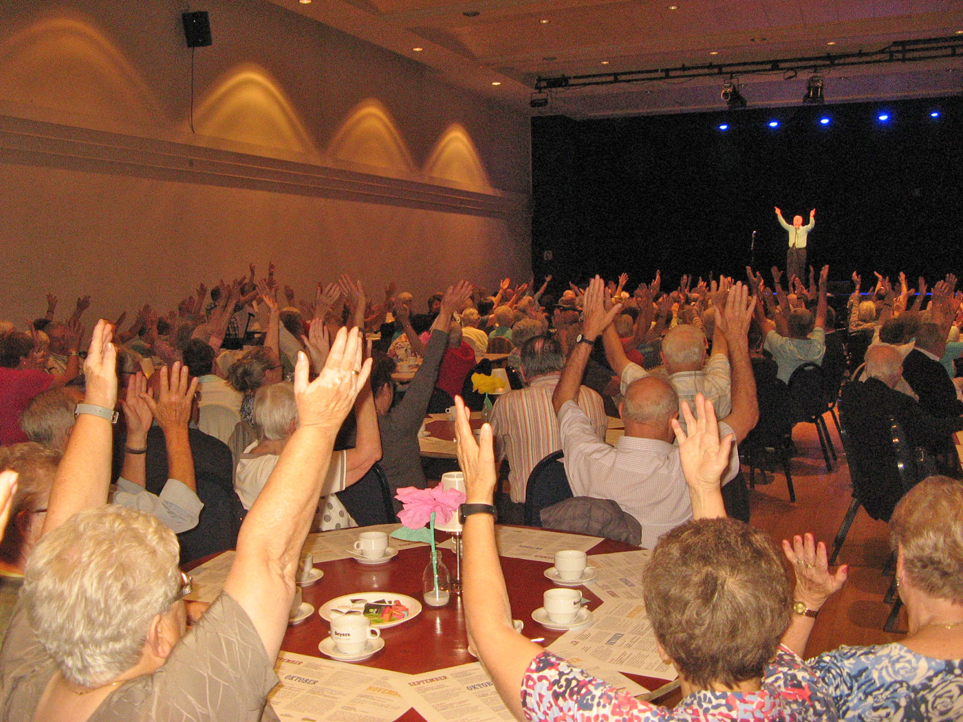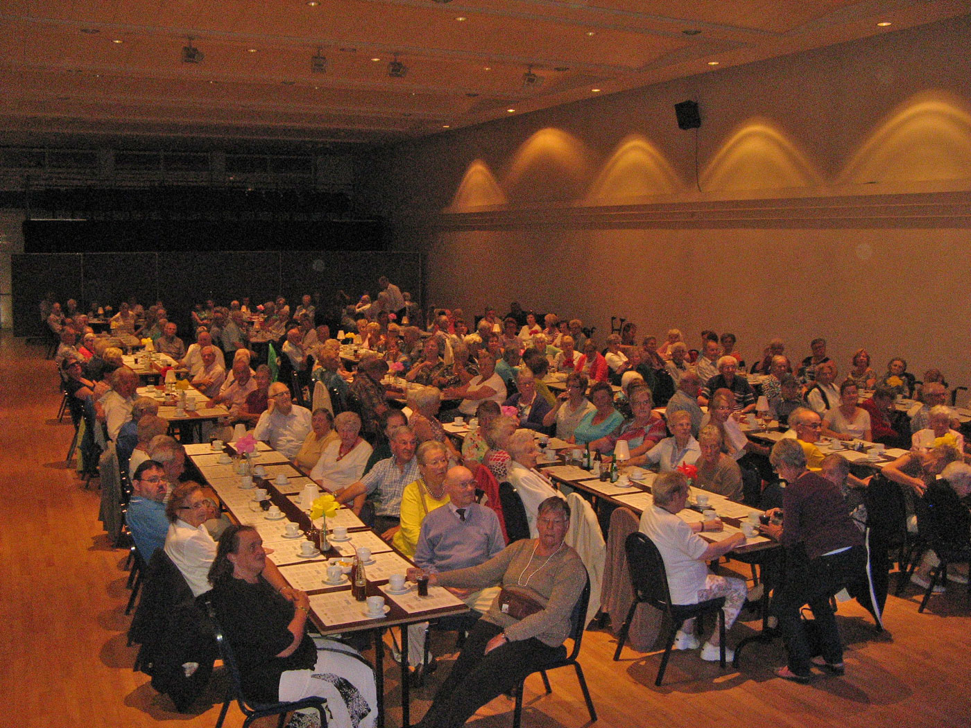 Het is nu al een jarenlange traditie dat de Kapelse Seniorenraad half september de Kapelse 55 plussers vergast op een feestnamiddag. Belangrijk hierbij is dat alle rusthuizen en dergelijke uit de gemeente prominent aanwezig zijn en dat hun bewoners, al dan niet in rolstoel, afgehaald worden met een aangepaste bus. Zij krijgen ook plaatsen vooraan in Het Bruggeske. Dit jaar genoten 250 en 200 senioren op 16 en 17 september, van een rustige shownamiddag met Marc Dex en zijn zangeres Anita. Onder de titel “Herinneringen met Marc Dex”, brachten zij een keure aan leuke bekende en minder bekende liedjes. Met ruim 40 jaar ervaring weet Dex uiteraard best zijn publiek in te palmen en te charmeren. Ook nu was WO I niet ver weg – en kwamen er liedjes van o.a. Vera Lynn aan bod. Het werden twee geslaagde namiddagen, waarbij allen tijdens de pauze koffie en flan aangeboden kregen. Ook de aanwezige schepenen An Stokmans en Ria Van Oncen lieten zich soms helemaal gaan.