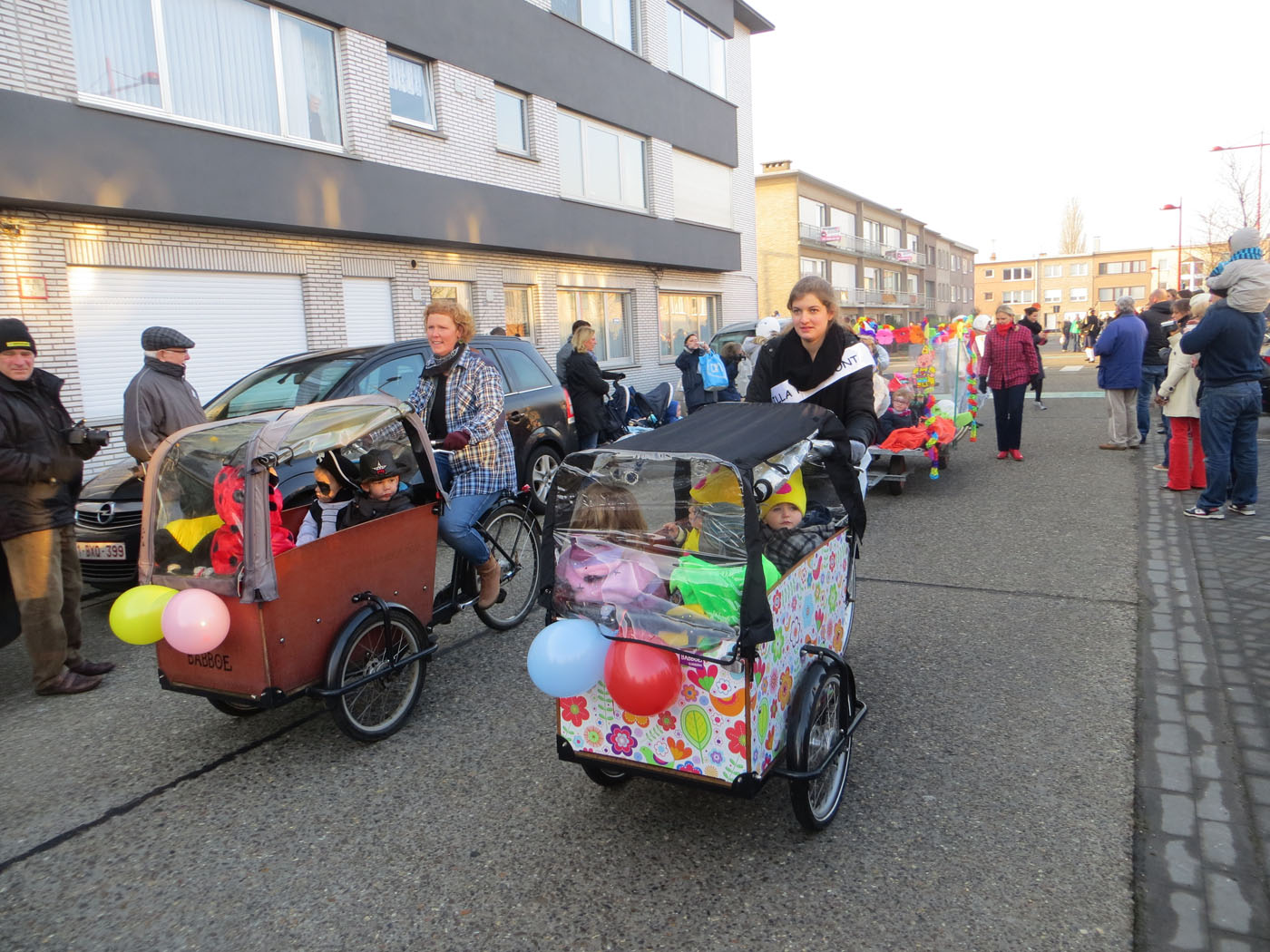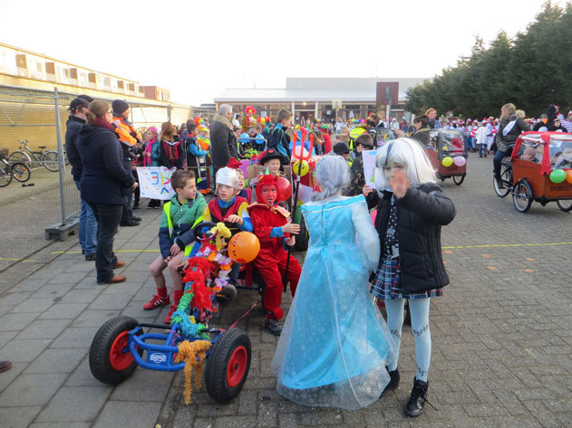 Traditiegetrouw trok de vrijdag voor de krokusvakantie, dit jaar op vrijdag de 13de, een bont gezelschap door de wijk centrum te Stabroek. Kleuters, leerlingen en leerkrachten van de Sint Catharinaschool hadden hun uiterste best gedaan om verkleed te paraderen door de straten tijdens de jaarlijkse carnavalstoet. De twee doedelzakspelers waren ook weer van de partij en trokken de stoet op gang voorafgegaan door de politie. De kleutertjes hadden de vrije keuze en daar zagen wij clowns, cowboys, Micky Mous, prinsessen, Mega Mindy, Sneeuwwitje, allerlei soorten beesten, enz…. Ook de leerkrachten en leerlingen van de lagere school bleven niet achter. Zo waren er gevangenen, astronauten, pinguins, enz… Knap werk allemaal. Onderweg stond een delegatie van de kon. fanfare Verbroedering die zorgde voor een vrolijke noot. Directeur Guy De Vriese sloot de rij met een rollator met de boodschap: “Den doktoor heft gezegd dat ik moest blijven bewegen”. Goed bezig.