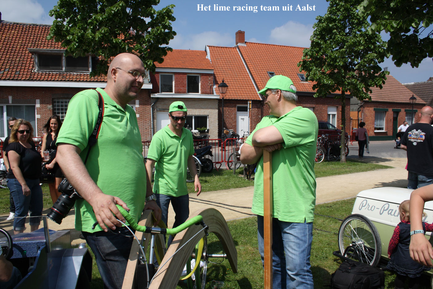 Al van ’s morgens vroeg bolden de eerste constructies het plein op en deden enkele testritjes. Kwestie van te kijken of hun bolide wel degelijk stand zou houden in de race.