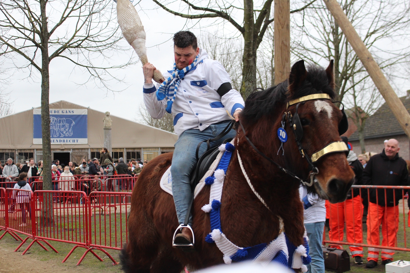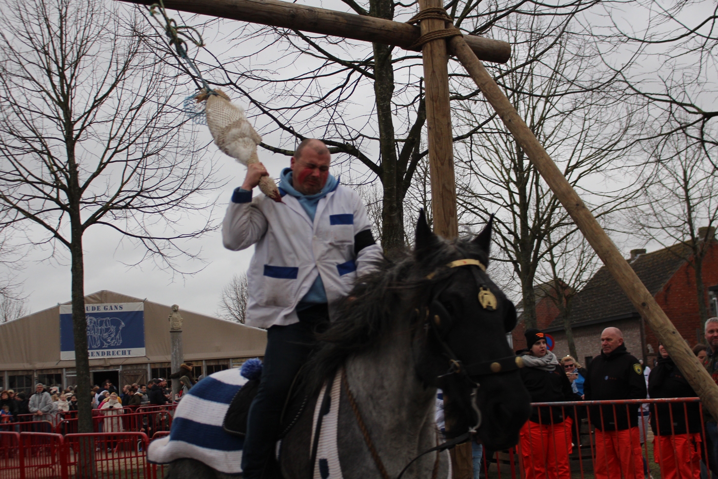 BERENDRECHT- De Oude Gans viert dit jaar haar 100ste verjaardag en richtte tweemaal het gansrijden in. Zaterdag 11 maart was er het veteranenrijden, waar Wouter Verhulst koning werd. Zondag 12 maart vond het traditionele gansrijden plaats. Hier kroonde Filip Van Gestel zich tot koning.