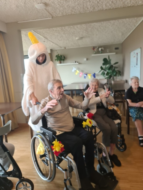 De namiddag werd feestelijk afgesloten met gezellige muziek, die al snel uitmondde in een spontane polonaise. Tot slot kon omroepster Merej met trots aankondigen dat er maar liefst 162 euro werd ingezameld. Dit mooie bedrag zal besteed worden aan een leuke activiteit voor de bewoners.