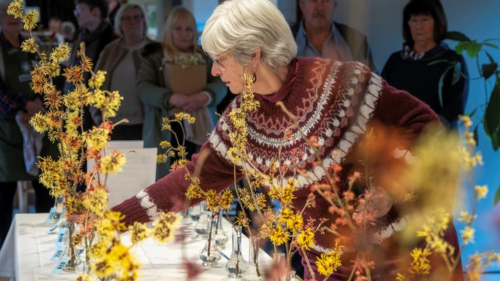 De mooiste toverhazelaartakken uit tuinen en terrassen gaan in competitie tijdens de Miss Hamamelis-verkiezing van Arboretum Kalmthout op zondag 25 januari 2026.   Copyright: Arboretum Kalmthout