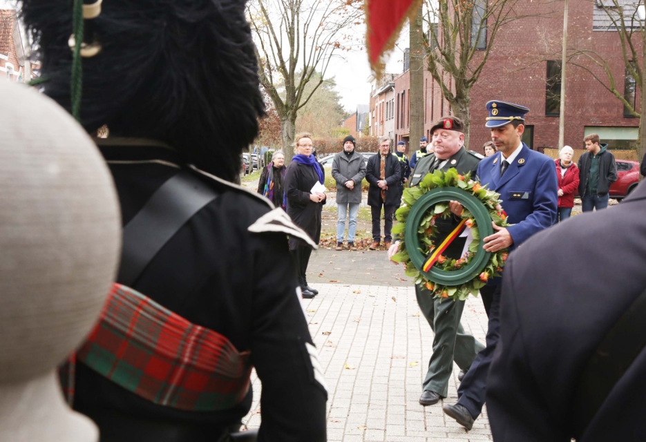 Sint-Mariaburg – Onder een grijze hemel verzamelden op 11 november enkele tientallen mensen op het pleintje achter de kerk van Mariaburg. Aan het monument had de jaarlijkse herdenking plaats van de slachtoffers van de Eerste en Tweede Wereldoorlog. Twee muzikanten van de Clan Hay Pipe Band en klaroenblazer Seppe van Lent luisterden de korte plechtigheid op. Namens het districtsbestuur, politie Antwerpen en Wijkwerking Mariaburg werden bloemen neergelegd. (mw)