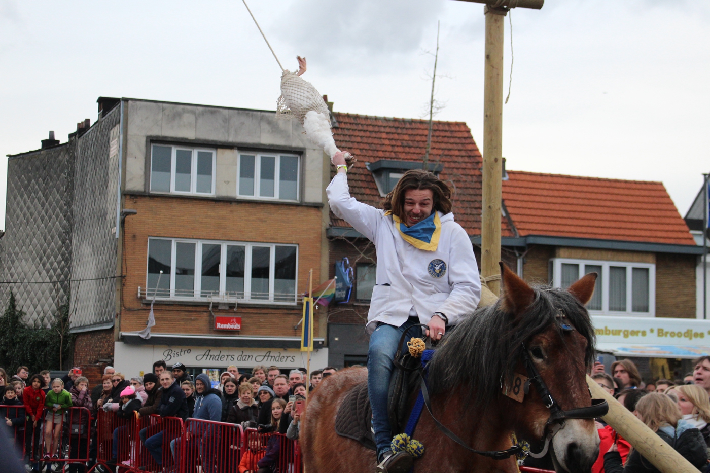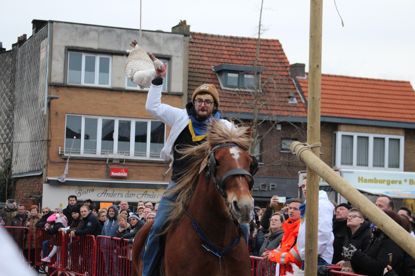 Joppe Vranken (23) werd op zondag 1 maart voor de tweede maal koning bij de Lustige Gans in Ekeren. Het gansrijden vond onder grote belangstelling plaats op het Kristus Koningsplein in Ekeren.