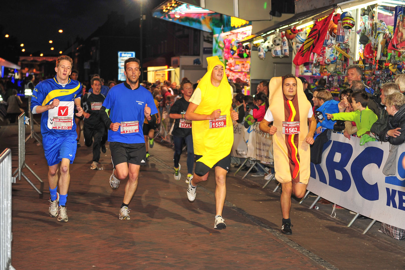 Nick Van Peborgh maakte op de 10 km zijn favorietenrol waar. Met een betere tijd als vorig jaar nl. 29’23” werd hij nogmaals de verdiende winnaar en dit voor de 7de keer in 9 edities. Roger Edor van ‘Breek de Stilte’ kreeg naar goede gewoonte een cheque van 500 euro en de aanwezigheidsprijs, een cheque t.w.v. 450 euro van reizen De Rop, ging naar Maarten Nuyens. ‘Miss bakkerij De Schutter’ Charlotte Van Nueten (dochter van Raf en Ilse Taeymans) deelde de medailles uit en ze deed dat schitterend. Jammer genoeg heeft de organisatie dit jaar afscheid moeten nemen van Luc Vermeulen, gewezen zaakvoerder van de computerwinkel in de Ertbrandstraat. Hij was er van in het begin bij en zorgde bij de kermisloop voor alles wat met computer te maken had. Bij de start van de 5 km werd er een minuut stilte gehouden. Zijn zoon Jan, die zelf meeliep gaf daarna het startschot.