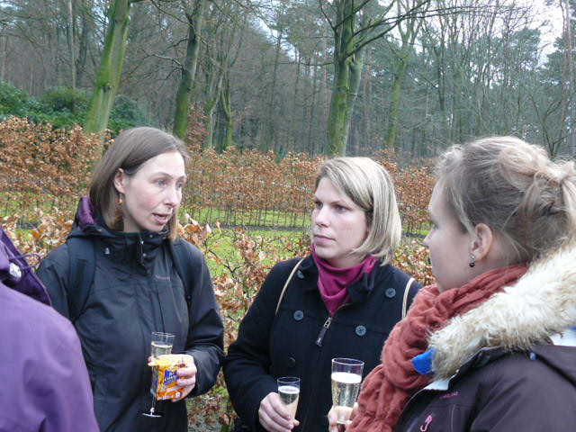 De trip werd ging richting de hoeve aan de weg naar de hooiweide. Daar had het kersverse feestbestuur van de fietsclub een kleine receptie in elkaar gestoken. Alle dames konden een heerlijk glaasje cava nuttigen terwijl er voor de papa’s een mooi assortiment van verschillende jenevers op tafel stonden. Na een uurtje werd de wandeltocht verder gezet via het gloriëtje en de parking zo richting Afspanning de Croone alwaar de rest van de receptie plaatsvond. Het café sponsorde met hotdogs en verse soep. De kinderen werden zoet gehouden op het springkasteel.