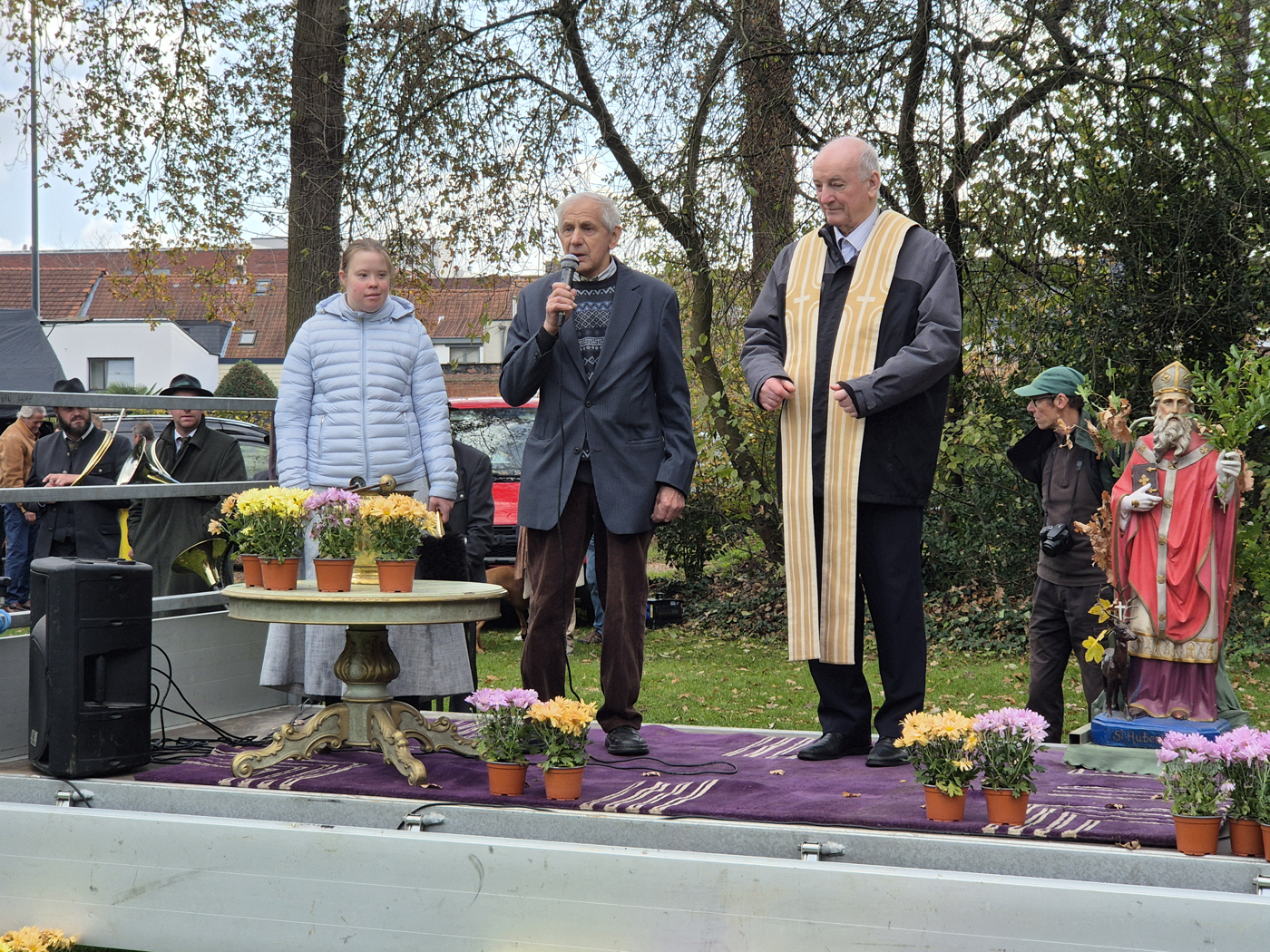 Na de mis werd het beeld van Sint-Hubertus naar het gemeentepark gedragen. Daar heette medeorganisator Herman Willekens de aanwezigen van harte welkom. Hij sprak zijn waardering uit voor de inzet van de vrijwilligers, de parochie, de gemeente Kapellen, de politie en de sponsors, die samen zorgen voor het voortbestaan van deze traditie. Ook Fons Bresseleers bracht, zoals vorig jaar, een toepasselijk gedicht.