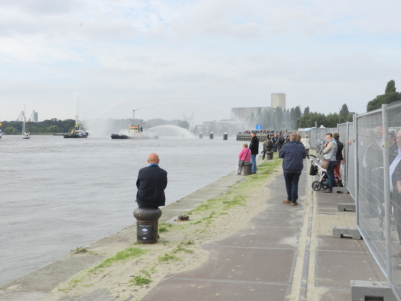 Vanaf 16uur was er zaterdag op de Schelde een grote maritieme parade. Maar liefst 220 schepen namen hieraan deel. “Een van de blikvangers in de parade was de drijvende 800-tons hijsbok Brabo. Deze waterreus vervoerde een container met daarin… Antverpia, de maagd van Antwerpen die symbool staat voor de Scheldestad. Zij speelde ’s avonds een grote rol in het klank- en lichtspel dat bij het MAS werd opgevoerd en dat meer dan 13.000 bezoekers kreeg die op het einde ‘Zie ik de lichtjes van de Schelde’ zongen samen met het Caeciliakoor.