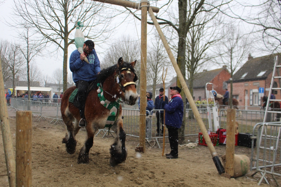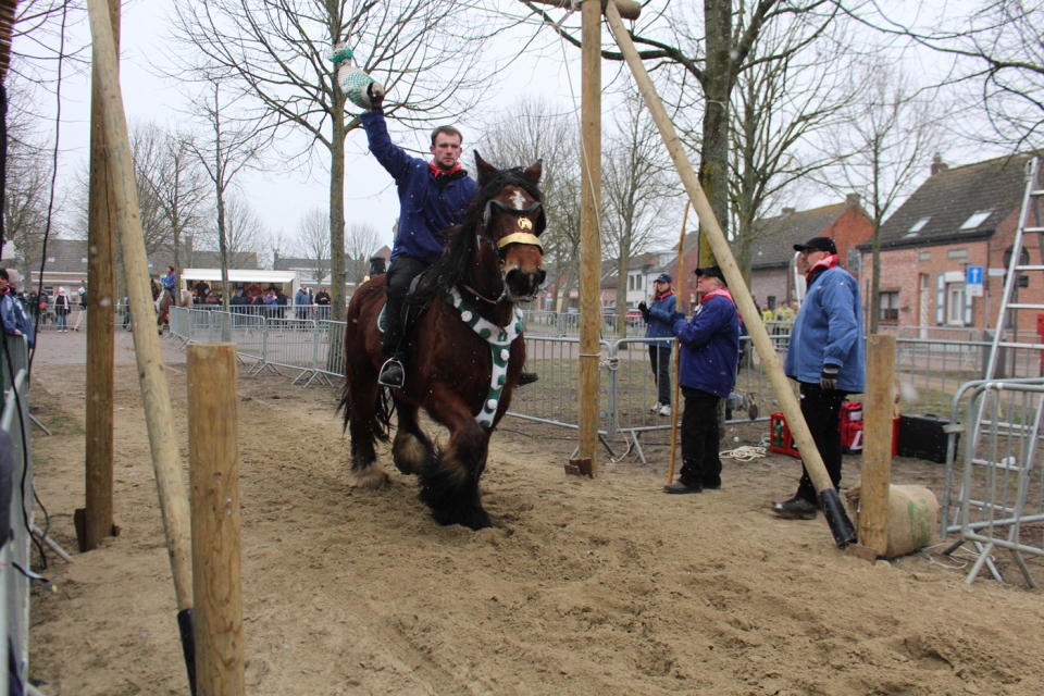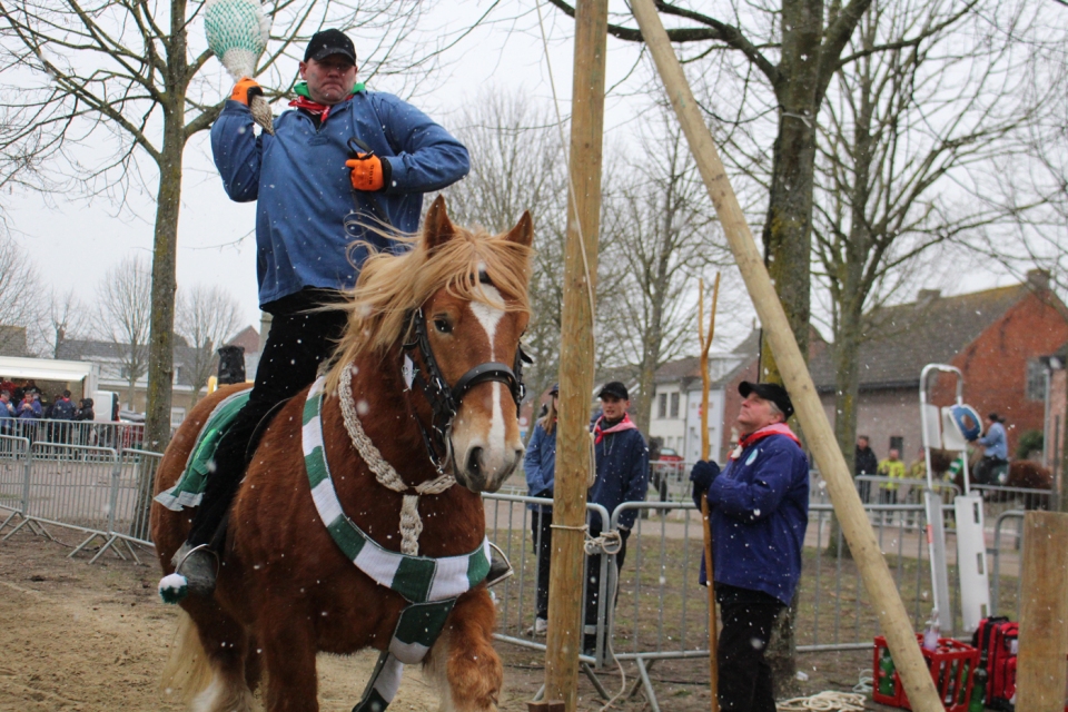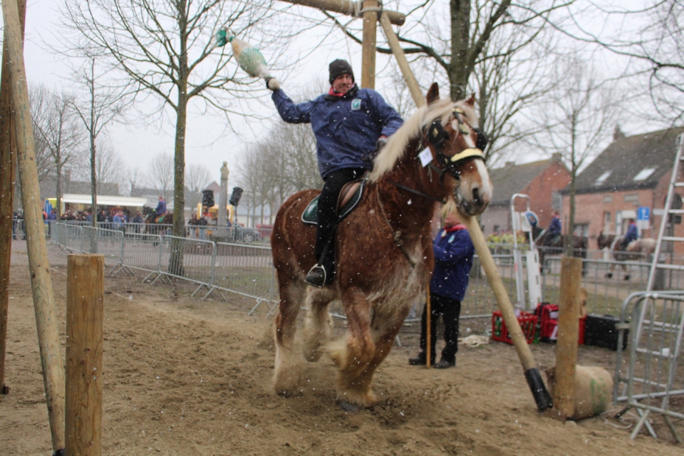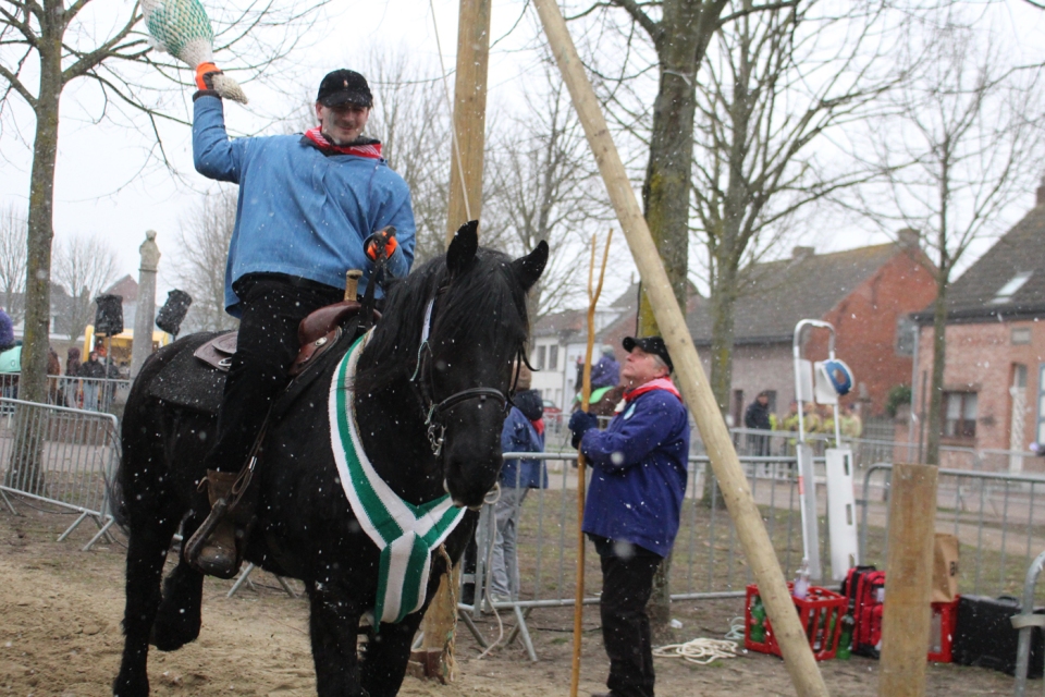 Nadien volgde een stoet langs de cafés in Berendrecht om uiteindelijk halt te houden op de Solftplaats, waar de strijd kon losbarsten. Op dat moment waren de weersomstandigheden al helemaal omgeslagen. De zon maakte plaats voor wolken en winterse buien. In een mum van tijd lag er dan ook een sneeuwtapijtje over de Solftplaats.